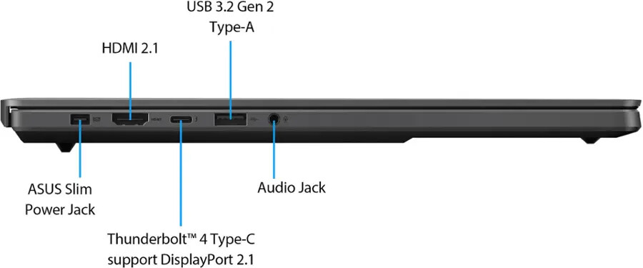 PortsSlots 2x USB 3.2 Gen 2 Type-A, 1x USB 3.2 Gen 2 Type-C with DP / PD, 1x Thunderbolt 4 with support for DP / PD, 1x HDMI 2.1 FRL, 1x card reader (SD), 1x 3.5mm Combo Audio Jack