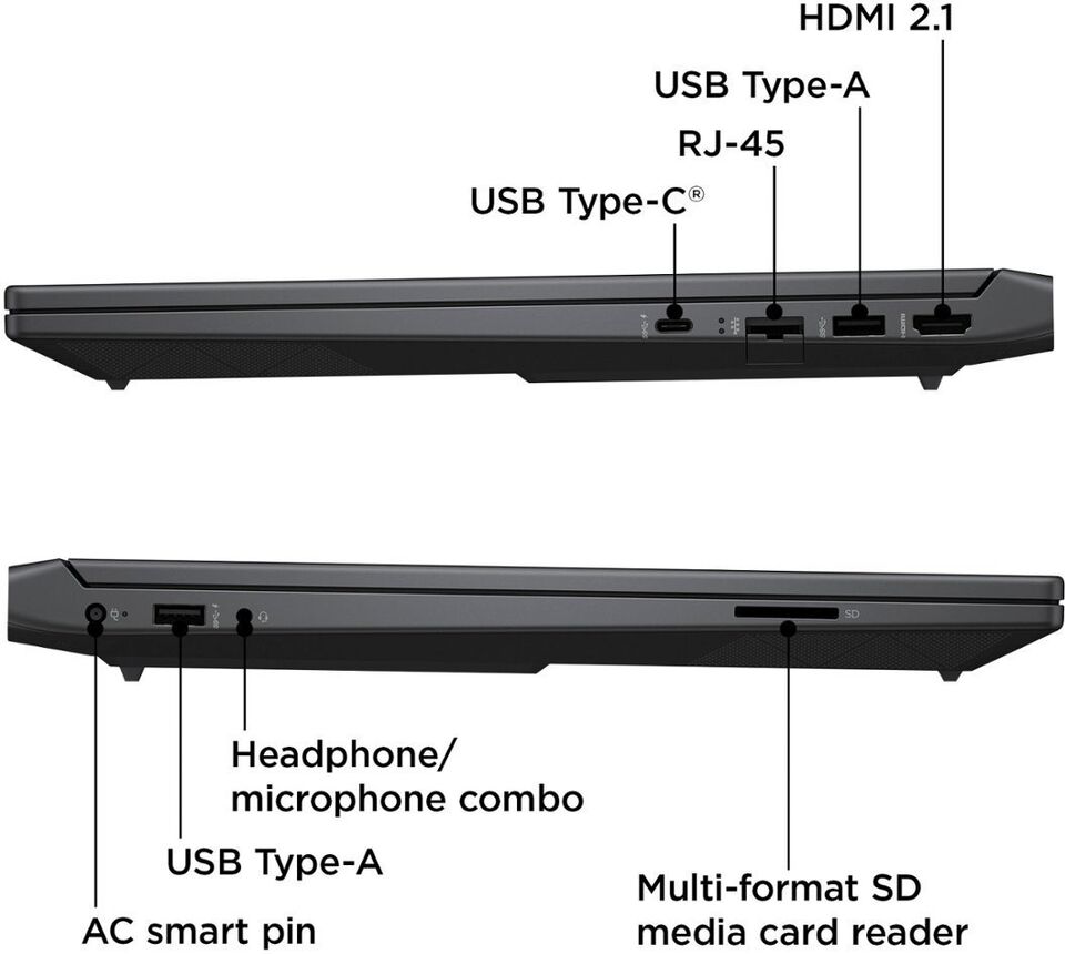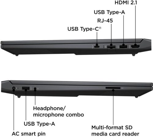 PortsSlots 2 x USB 3.1 Type-A, 1 x USB-C 3.1 Type-C (DisplayPort 1.4, HP Sleep and Charge), 1 x HDMI 2.1, 1 x RJ-45, 1 x Headphone/Microphone Combo Jack, Multi-format SD media card reader