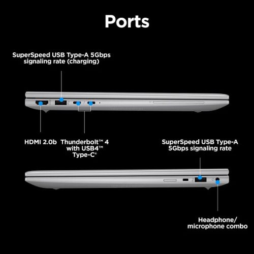| PortsSlots | 1x SuperSpeed USB Type-A 5Gbps signaling rate (charging); 1x HDMI 2.0b; 2x Thunderbolt 4 with USB4 Type-C 40Gbps signaling rate (PD,DP 1.4), 1x headphone/microphone combo; 1x SuperSpeed USB Type-A |