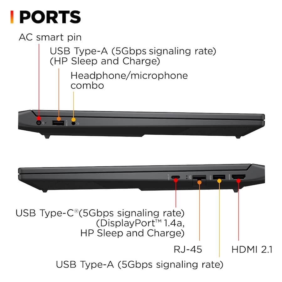 PortsSlots 1x USB Type-C (DP 1.4a), 1x USB Type-A, 2x USB Type-A, 1x RJ-45, 1x Headphone/microphone combo, 1x AC smart pin, 1x HDMI 2.1