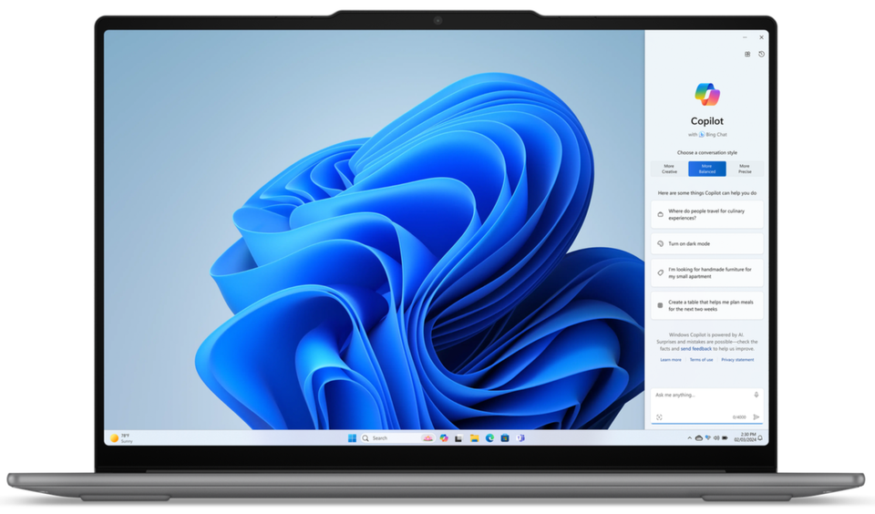 | Input | 6-row, multimedia Fn keys, Copilot key, US English Backlit Keyboard |