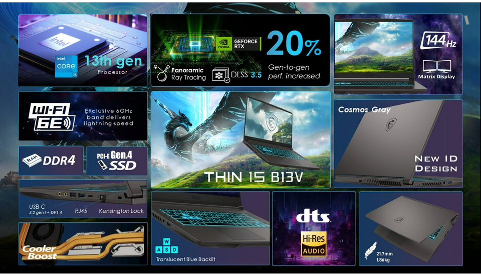 MSI Thin 15.6″ B13V Gaming 144Hz FHD i5-13420H 16GB 512GB SSD GeForce RTX 4050