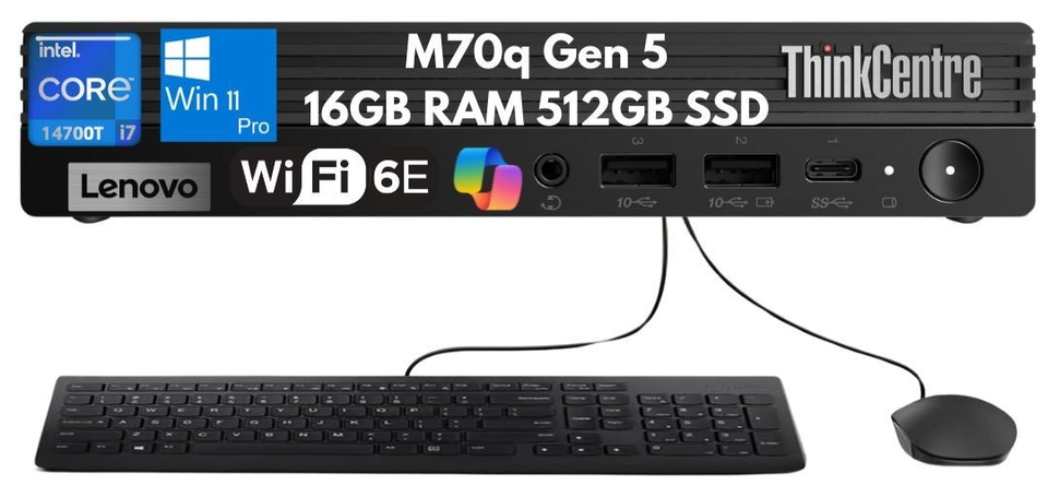 New Lenovo ThinkCentre M70q Gen 5 Tiny i7-14700T 16GB 512GB SSD Wi-Fi 3 Yr Wrty